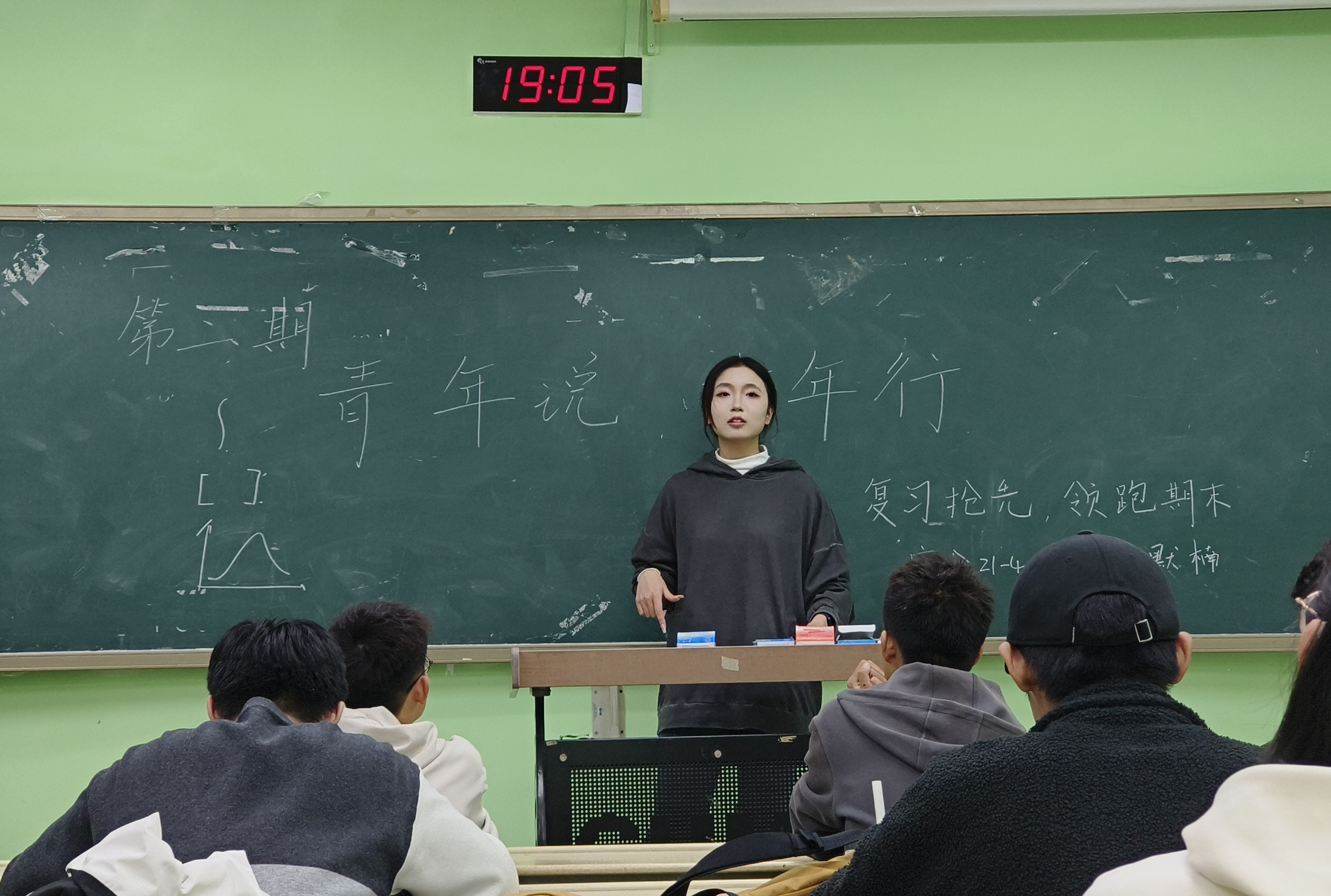 活动伊始,韩默楠向同学们了解询问了各科学习进展以及同学们的复习情况。接着,她结合课程安排和考试要求,提供了不同科目的备考策略。韩默楠就期末学习、校园生活、学生工作、人际交往等方面进行了详细的讲解。最后,韩默楠希望各位同学把握好大学时光,珍惜校园生活,努力学习,增长见识,积极参加校园活动,努力提升个人本领,不负韶华,绘就璀璨大学生涯!