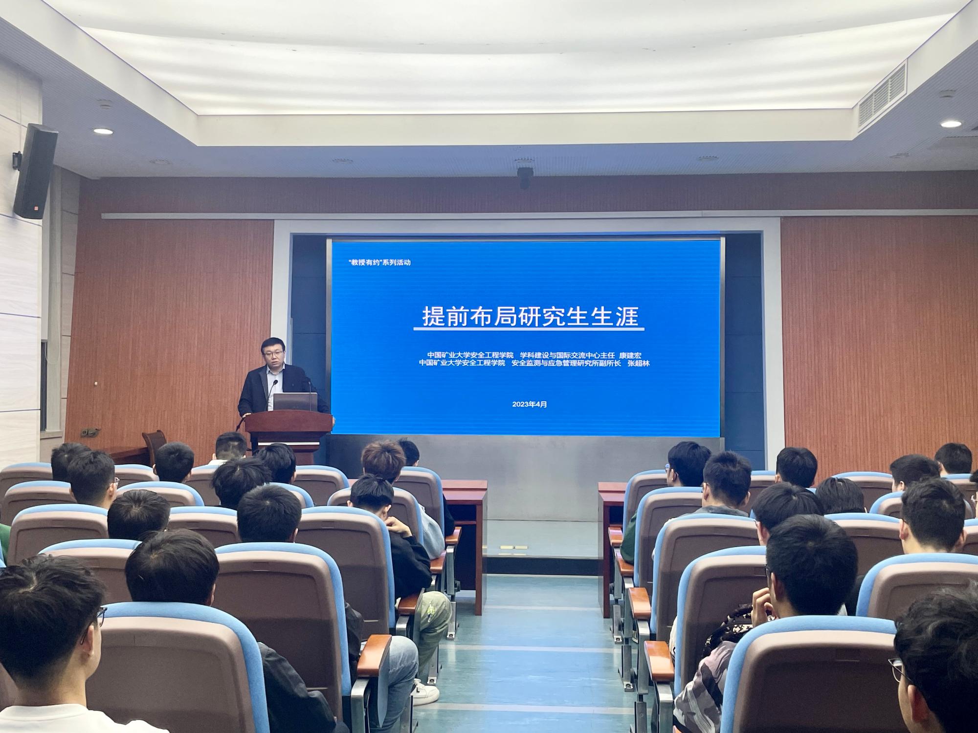 在矿业科学中心A200开展第八十二期教授有约活动,康建宏教授、张超林老师受邀担任主讲,19级辅导员郭佳、20级国际班行政班主任王金鑫及19级升学学生、20级国际班学生参加了此次活动。本次活动由19级国际班行政班主任林忆超主持。