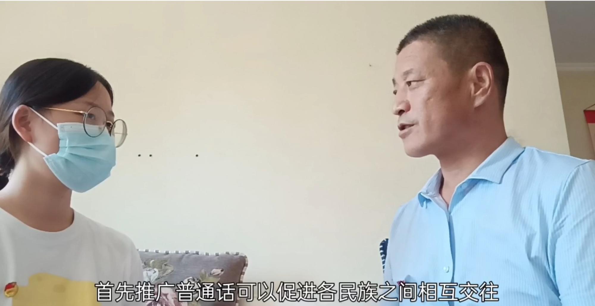 为了充分了解少数民族地区的普通话开展情况,团队成员亲自采访恰尔巴格乡米韦果勒村第一书记刘淑政、阿格达拉镇政府财务室“三支一扶”干部古丽努尔•阿德勒别克、尼勒克镇团结路宝丰超市的经营者王秀芳、额敏县村民唐努尔、塔城地区塔城市住建局干部华民、重庆市黔江区册山村村委成员以及学生祖力亚尔。
