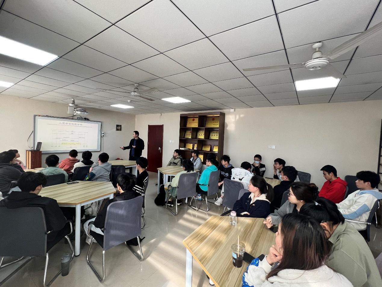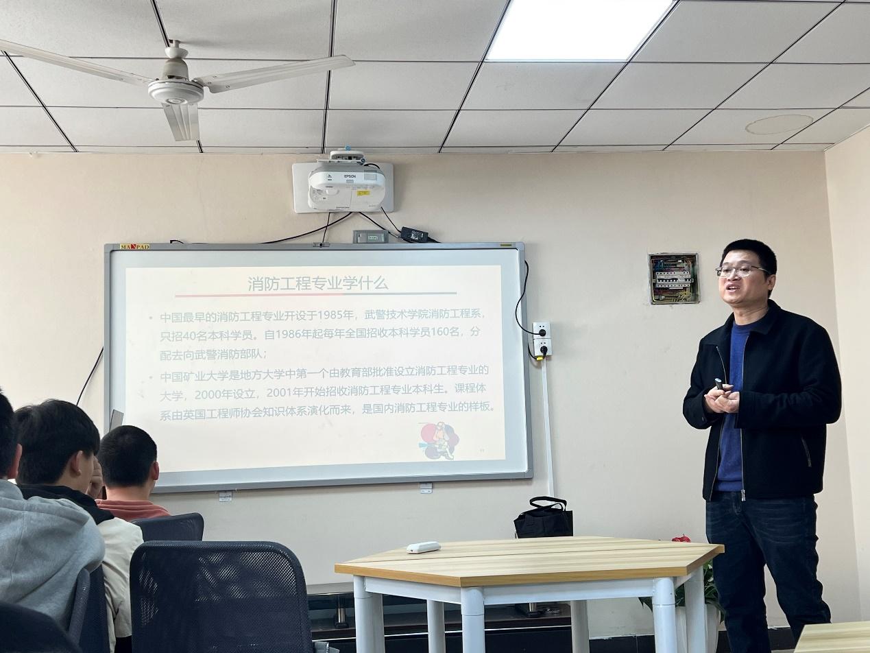 活动开始,刘洪永老师从消防专业的发展历史沿革出发,围绕消其研究方向以及时代任务向同学们详细阐述了消防工程专业的发展背景,并以此引出了消防工程专业的现阶段热门研究方向——城市地下火灾消防及隧道排烟工程。通过具体的案例分享以及自身的科研、任教经历,刘老师在轻松的氛围中为大家讲解了专业内涵,同时提醒同学们建立专业自信,督促同学们认真学习基础课程,为日后的科研工作打下夯实的基础。接着,刘老师向同学们展示了具体的科研成果、学校科研实验硬件条件以及正在进行的课题,让同学们真切地感受到科研的魅力,不知不觉间增强专业自信。最后,刘洪永老师从不同研究方向出发为大家讲解了大学生创新创业大赛并提出了相关的建议,在同学们的积极提问中和刘老师的耐心讲解中,本次活动圆满落下帷幕。