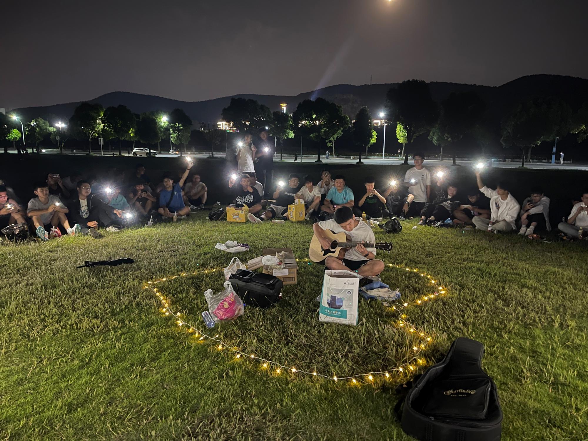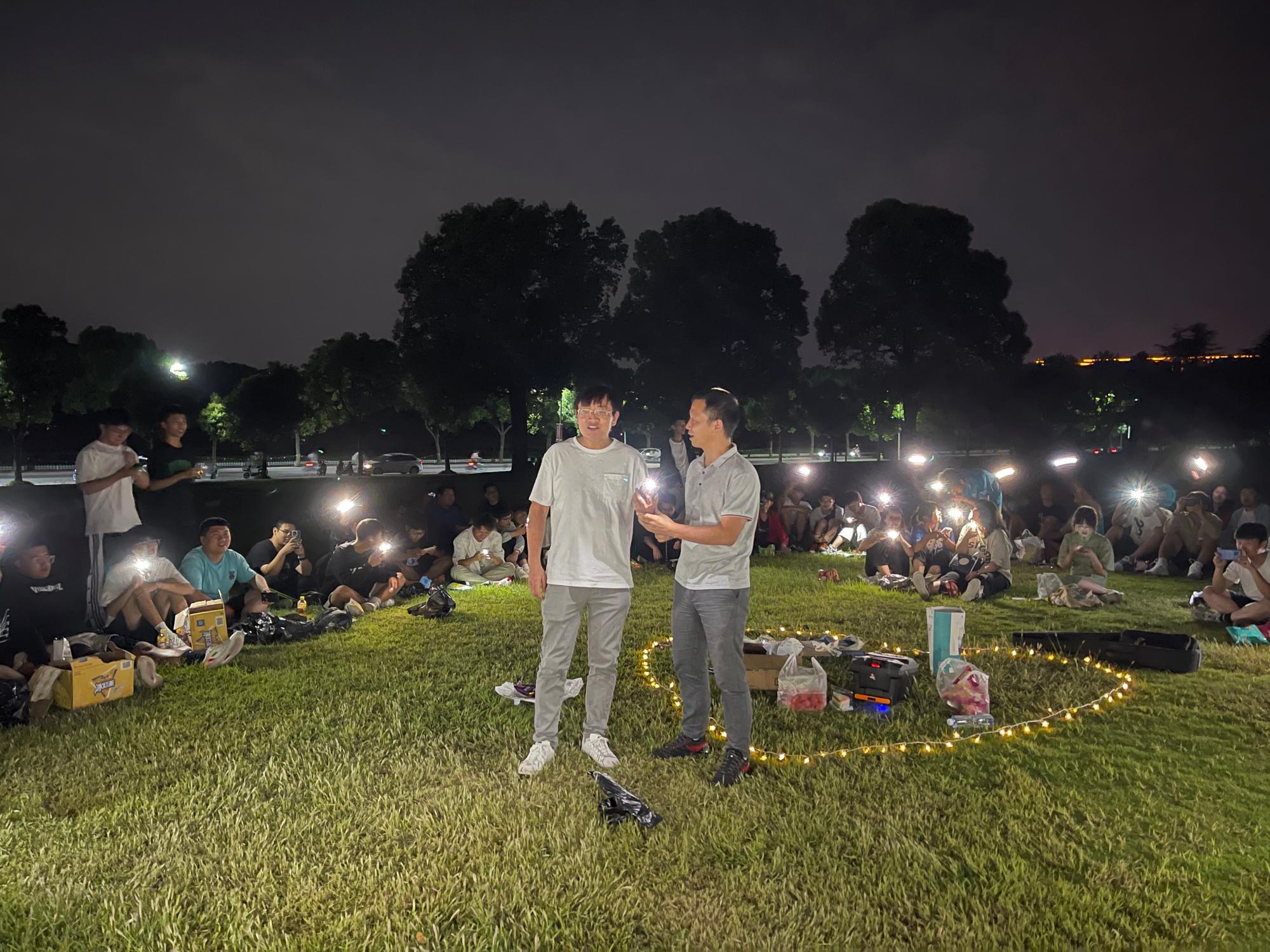 在博五大草坪上开展新生中秋团辅活动。辅导员赵厚宽、2022级行政班主任余旭和2022级全体同学参加了此次活动。
