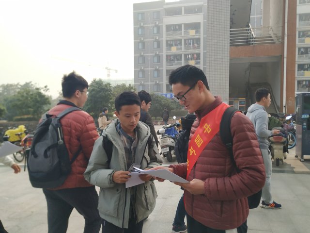 志愿者向同学们宣传活动