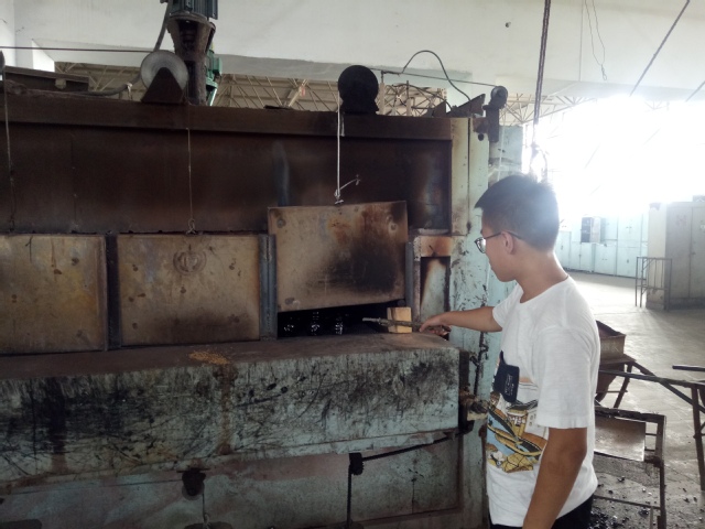 上午九点,团队成员准时集合完毕,并一同跟随红海玻璃厂内向导进入红海玻璃厂的生产车间。在充分学习玻璃手工烧制安全注意事项后,同学们在向导的带领下进入手工DIY体验区。队员们在现场师傅的教学指点下共同设计,学习撑丝、吹球、外皮开口、内胆开口封底、接口、封底以及最后退火的操作。虽然有些瑕疵,但最终每个人还是烧制了自己独一无二的玻璃杯。