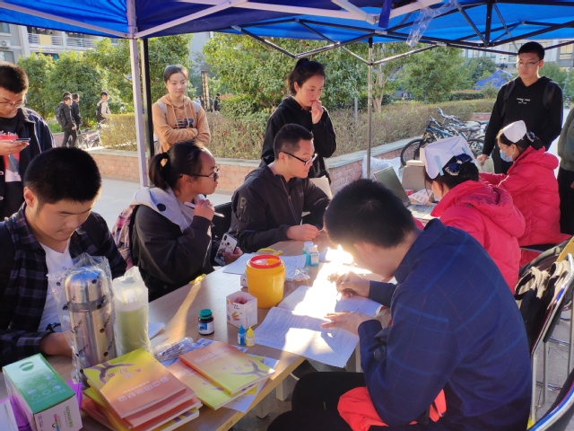 10月18日下午,献血活动正式开展。活动伊始,很多同学围在报名处咨询了有关献血的具体事宜,并且填写了登记信息。现场工作人员表示,前来咨询的同学最关注的问题就是自己目前的情况能否献血。此外,针对同学们对献血的误解,工作人员对同学们做出了耐心的解释,合理献血有益于身体健康,本次活动的采血人员全是专业医师,所用器具全是一次性的卫生用品,同学们无需有什么顾忌。工作人员还鼓励同学们积极参加活动,献出自己的爱心。在同学们学习了献血的相关政策,以及献血的相关要求,对献血有了一定的了解后,许多同学表示要献出自己的一份爱心,参加献血活动。