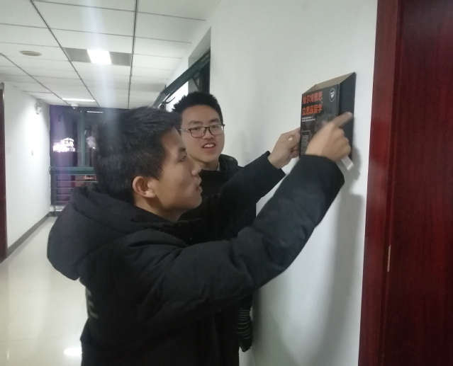 参加此次活动的安全志愿者们准时在梅三一楼集合,他们首先进行了相关任务的分配工作,之后开始扫楼工作。在整个活动过程中,志愿者们相互配合,力求高效率、高质量的完成任务。针对宿舍楼内广告单横飞的现象他们耐心的向同学介绍活动的内容和意义,认真安装广告盒,按计划一步步完成自己的工作。同学们都对“爱心广告盒”活动表示极大的支持
