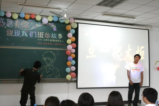 心理健康辅导站和心理自助中心承办的“透过感恩的窗,沐浴心灵阳光”系列活动之“感恩有你――说说我们班的故事”班级风采大赛决赛于教一A302成功举办。PO18