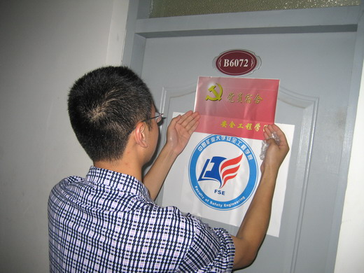 短暂的会议过后,学生党员所在的宿舍门上都在各班党员的工作下挂上了“学生党员宿舍”的牌子。此次的党员宿舍名牌由红底黄字构成,与国旗的色彩一致,牌的最左上角印有“镰刀和锤头”代表中国共产党。这块牌子可以时刻提醒广大学生党员以身作则,积极引导其他同学学习科学发展观,在学习中不断创新实践,努力构建和谐宿舍。