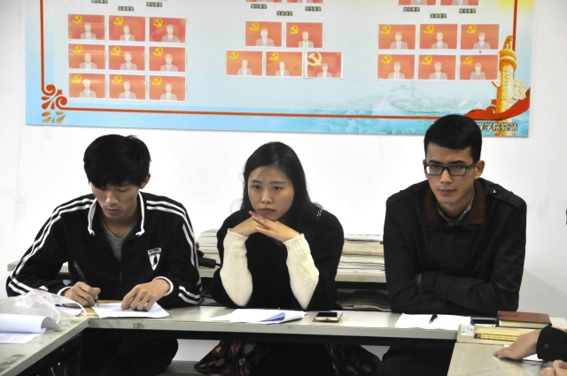 下午四时左右,与会人员陆续到场,并依次就坐。首先,主持人阐明了本次会议的意义及流程,并对与会人员做了介绍。接下来,全体成员研读了纪念红军长征胜利80周年大会习近平讲话的相关文件。文件中,习主席总结了长征的伟大意义和深刻精神内涵,提出了弘扬伟大长征精神、走好今天的长征路的具体要求。随后,大家各抒己见,对长征精神作了重点讨论。吴老师表示,长征胜利是前无古人的壮举,在中国革命道路上既是磨难又是转机,而在其中形成的长征精神,小到学院大到国家建设都有极为深远的意义,我们这一代既要传承也要创新和发扬。
