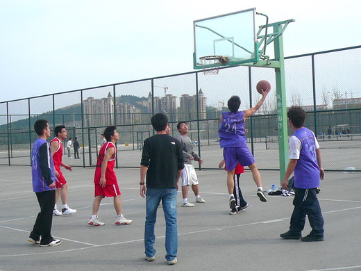 下午四点,安全学院安全09-3班与计算机学院计科09-6班的同学在梅苑篮球场进行了一场篮球友谊赛。比赛吸引了两班的同学前来加油助威。