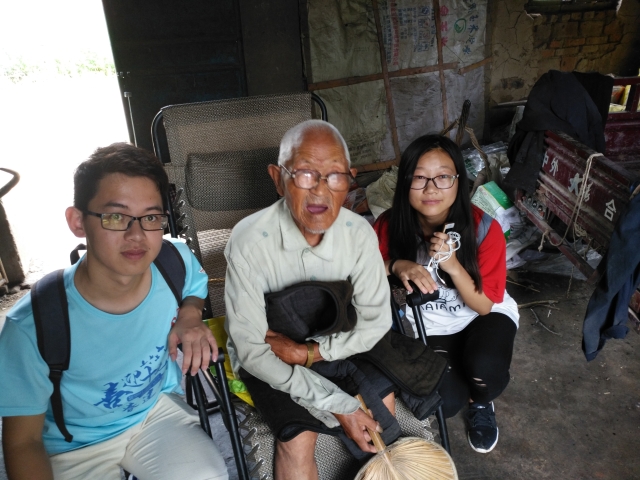 下午三时许,志愿者们到达徐汉芝老前辈的家中。徐汉芝老前辈今年已有96岁高龄,于1944年入伍,当时的他本应谈婚论嫁,但他却选择了入伍。年轻时老前辈的家中仅有父亲、弟弟和他三人,母亲过世,为了让弟弟留下来照顾父亲,老前辈选择参军。老前辈所在部队时38团,回忆战争,老前辈说道:“我们没有经过任何训练,就直接扛枪上去打鬼子了,那个时候鬼子住在武华山顶上,他们经常会下来,打我们游击队,鬼子的武器很先进,也很厉害,而我们武器都没有,一般就只能用刺刀,都是捡的日军的,然后子弹也是土弹,我们不能硬碰硬,我们这个游击队就躲在南面,能打就打,打不过我们就跑,他们的力量太大了,我们躲在一边去,偷偷打鬼子,我们就是一路游击队。”解放战争时期,老前辈参加了淮海战役和渡江战役,后来负责送新兵,后来听闻父亲去世的噩耗,回到家中,1955年复员回家结婚。采访结束,老前辈同志愿者亲切合影。