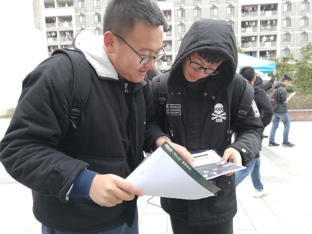中午12时,志愿者们准时来到三食堂门口开始宣传。据悉,想要参加高数救援队活动的同学,可以扫描志愿者们派发传单上面的二维码加入QQ群报名。报名结束后,届时每周将会进行两次辅导,每次一小时。辅导具体时间为周三、周六与周日下午四点至五点,志愿者和接受辅导的同学可以任选其中两个时间点。高数是大学的一门基础理论课程,具有高度的抽象性、严谨的逻辑性和广泛的应用性。因此学好高数不仅关乎学分,也关乎思维的发展。本次活动通过有针对性的高数辅导,以期让同学们在沟通与交流中轻松愉快地提高高数成绩,降低高数挂科率。同时也可以让更多的同学掌握运用数学的基本思想与方法,提升逻辑思维能力,促进全面发展,营造良好的学习氛围。尽管正值中午吃饭的时间,但志愿者们毫不在意。他们忍受着饥饿,在寒风中拿着传单,一遍又一遍耐心地向路过的同学宣传活动的内容,以求更多人可以了解并参加到这个活动中来。从人来人往的高峰期一直到所有人吃完离去,志愿者们一直面带微笑,尽职尽责。