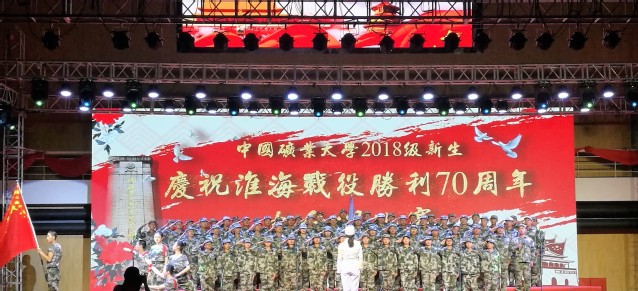 2018级新生“庆祝淮海战役胜利70周年”主题合唱比赛在南湖体育馆举行。本次合唱比赛由PO18