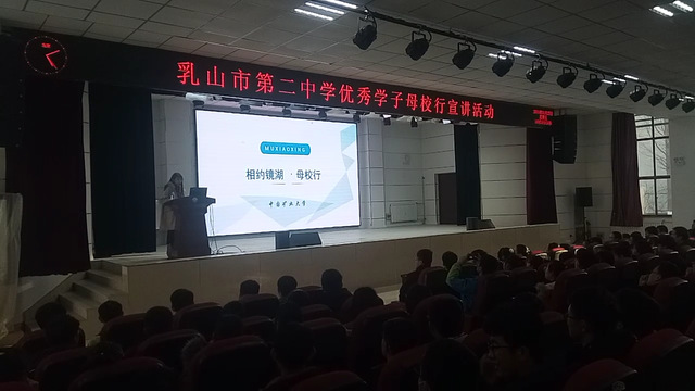 25日下午3点半,在乳山市第二中学负责教师的带领下,同学们来到二中报告厅进行宣讲会的准备事宜。十分钟后,全体高三学生集合完毕入场就坐,宣讲正式开始。PO18