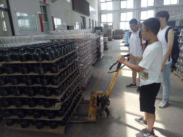 上午八点,团队成员准时集合完毕,并一同跟随红海玻璃厂安全负责人进入红海玻璃厂安全质检车间。在充分学习玻璃厂安全工作守则后,玻璃厂安全负责人带领队员们进入安全质检车间工作区域。在车间,调研队员们参与了玻璃制品出厂前的质检环节。