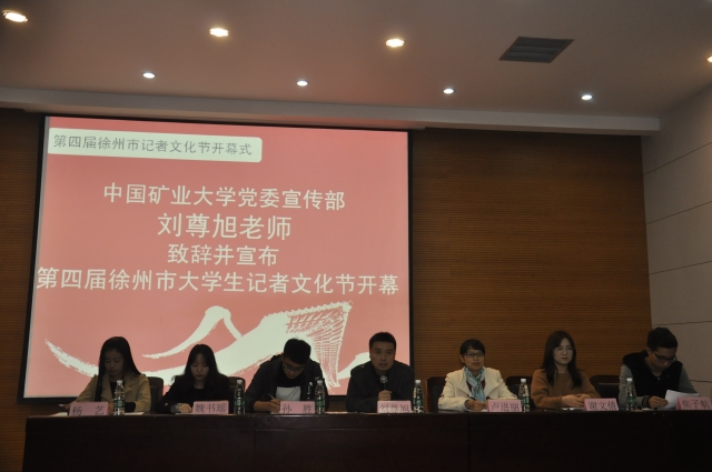 党委宣传部、江苏师范大学党委宣传部、徐州医学院党委宣传部以及江苏建筑职业技术学院党委宣传部共同主办的第四届徐州市大学生记者文化节开幕式在化工学院报告厅召开。此次记者文化节旨在为徐州各大院校的记者们搭建有效沟通的交流平台。PO18