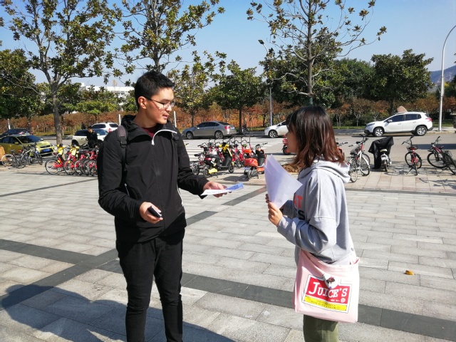 委员会开展在全校范围内募捐棉被和衣物,为红叶小动物救助站献出一份力量的“爱在红叶、旧衣深情”活动。11月11日,安全学院公益志愿中心服务分队在三食堂广场开展活动宣传工作。