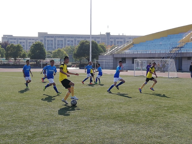 几分钟休息之后,下半场比赛开始。土木学院开始疯狂反攻,比赛进入了白热化阶段。在对方的一次进攻中,安全学院队员不慎在禁区内铲倒了对方球员,对方将点球罚进,使比赛重新回到原点。丢球之后的安全队员们没有垂头丧气,他们以更加流畅的传球把控球权牢牢掌握,没有再给对方一次机会。随着比赛即将进入尾声阶段,安全队员利用土木队员的松懈组织了一次防守反击,对方还没反应过来球已经打入门中。终场哨声将本场比赛的比分锁定在2:1,安全学院代表队在小组赛中力压群雄,取得了淘汰赛的门票。