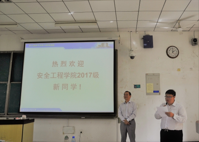 在博五A107举办了理想信念及形式政策教育活动。此次活动由辅导员刘世通主持,安全学院党委书记章毛平出席本次活动,并为活动做出精彩的演讲。安全学院2017 级全体同学参加了本次教育活动。