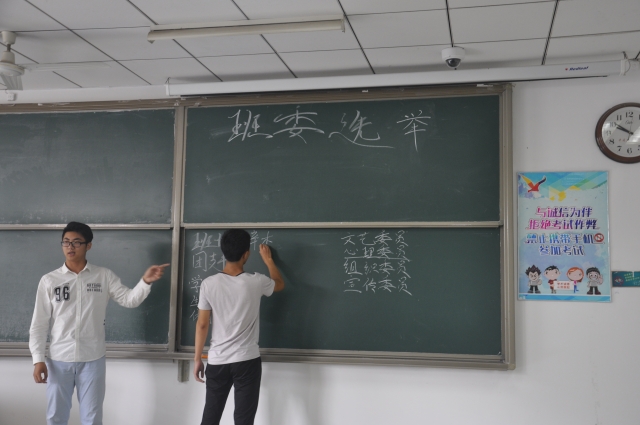 会上,本着平等、自愿、公开的原则,班级同学通过自愿报名、民主选举投票等步骤选举出了新一任的班干部,辛杰任班长,宋姝丽任团支书,张伟、罗望等同学任班委。在全班同学的见证下,新一任的班干部与前一任班干部进行了交接。随后,班长辛杰向同学们介绍了新学期的新任务,就《PO18