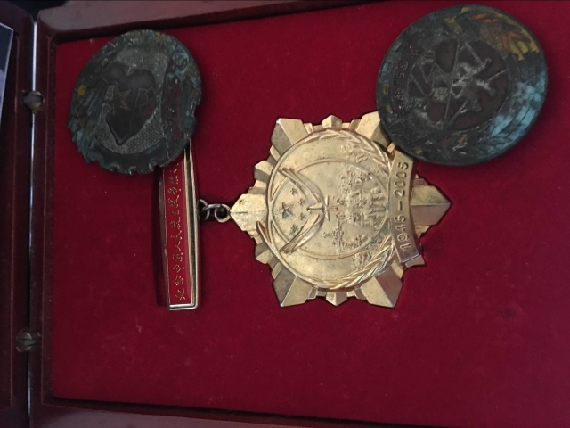 董老前辈向志愿者展示纪念章