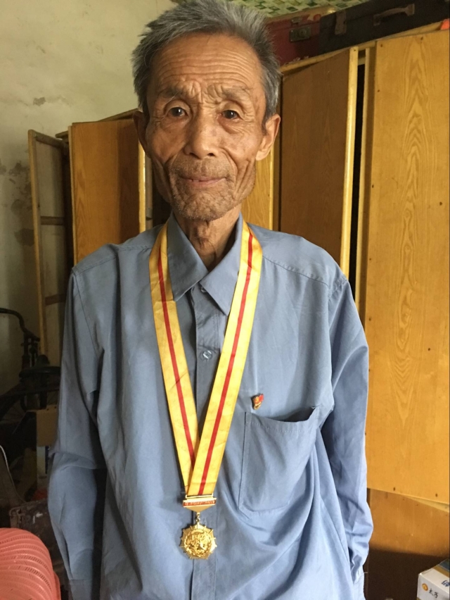 董文征老前辈今年已有89岁高龄,他于1944年加入新四军,当时的他仅有15岁,谈到入伍原因,他说道:“我开始是儿童团的,在这个地方就拉游击,八路军新四军都打游击。我那时候很小,十几岁,就跟着部队走了。那时候日本鬼子到处抢杀,在家也不行,我就走了。那时候看日本鬼子到我们这个地方到处杀人放火,老百姓南跑北跑,不跑就被杀了。日本鬼子侵略中国时残酷啊。他见了中国人就杀,不管你是军队也好老百姓也好,烧杀抢掠。”董老前辈入的是十八军,二野战军,解放西藏的部队,老前辈在队里主要是负责后勤,他说:“打仗的时候我是后勤兵,供给,军需,军队要用的物品都属于我们单位。枪炮,子弹,装备,都是我们管。”在部队时老前辈也曾学习写字,管财会等。采访最后,老前辈向志愿者展示了自己以前所获得的勋章和一些老照片并与志愿者亲切合影。