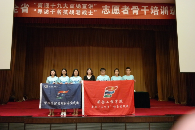 7月5日——6日,江苏省“喜迎十九大百场宣讲”和“寻千名抗战老战士”志愿者骨干培训会在江苏省南京市双门楼宾馆举行。安全学院团委书记孙婷以及主要“寻千名抗战老战士”学生骨干参加了本次会议。