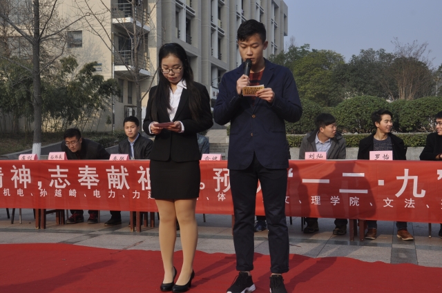 因本次活动要求各学院运动员提前半小时到指定位置出示校园卡或学生证完成检录,故8点30分,各学院参赛运动员都已到达桃苑广场,有序出示证件进行检录。9点,开幕式正式开始。首先两名主持人致欢迎词并介绍了出席本次活动的十四个学院的学生会主席以及一二·九长跑活动的目的和意义。接下来机电学院主席刘灿就本次活动的历史意义发表讲话,简单介绍了一二九运动,他倡导作为新时代大学生的我们应该传承和发扬一二九运动所体现的爱国主义精神,为社会主义现代化建设作出贡献。