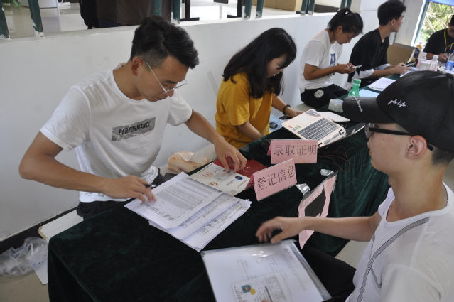 安全学院的迎新工作队伍主体由团委学生会成员组成,采用轮流替班制服务。所有迎新工作人员都统一佩戴工作证,在迎新会场热烈迎接新生与家长,并办理相关手续。此外,安全学院还别出心裁地在梅苑迎新会场设置了新生签名墙和拍照框,新生可在墙上签名并与家长一起在拍照框合影留念。
