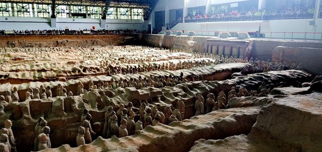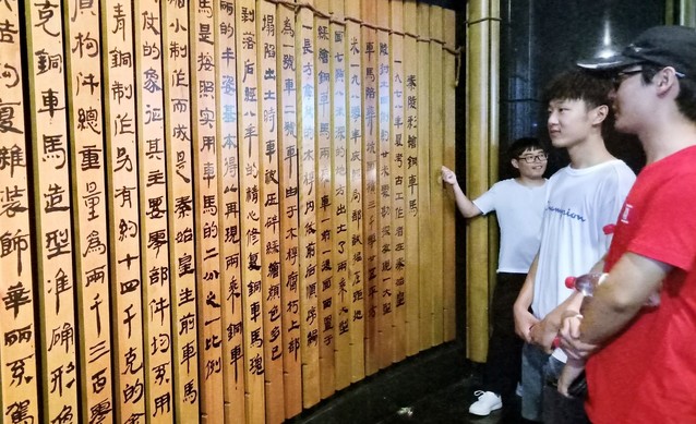 为了进一步感知当地最辉煌的文化,实践团于下午3时到达了代表古都最鼎盛文明的秦始皇文化风景区。首先,实践团成员来到秦始皇陵地宫,置身其中,可以清晰地感受到当时的兴盛。接下来,队员们来到被称作“世界第八大奇迹”的秦兵马俑,无论是千百个形神兼备的官兵形象,还是那一匹匹栩栩如生的战马塑像,都不是机械的模仿,而是着力显现它们“内在的生气、动力、情感灵魂、风骨和精神。”队员们纷纷赞叹这是古代人民智慧和劳动的结晶。