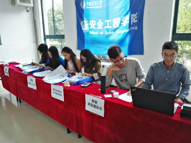 上午九点,志愿者们在梅三一楼右侧平台集合,开始布置迎新会场。学院分别在三食堂广场、梅苑三号楼一楼设有迎新站,便于引导到校新生报名。当新生从学校东门进入抵达一号迎新点后,三食堂迎新点志愿者负责引导新生前往梅苑三号楼一楼进行报道。梅三迎新点有大量志愿者负责录取新生信息、检查录取通知书、发放新生大礼包,同时引导新生领取卧具、核对军训服装、前往新生宿舍。正值安全学院建院十周年之际,安全学院迎新实施新方式、突出新特点。三食堂迎新站张贴有学院院徽、学院吉祥物安安和消消的展板;梅三迎新点设有党建展板、优秀毕业生优秀学生展板,立有新生签名墙、照相留影框,同时还放有投影仪以便实时播放学院视频。下午两点,迎新准备工作全部结束,学院志愿者们对迎新工作进行了实习演练。