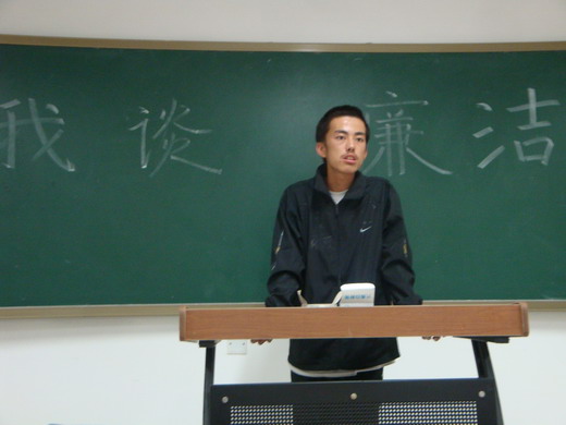 此次班会分为 “我谈廉洁”,“工作安排”,“同学交流”三部分。班委成员率先发言,他们纷纷发表了自己对廉洁的认知和想法。之后,同学们踊跃上台发言阐述自己对校园以及社会廉洁之风的看法,同时也表达了自己的廉洁之心:将廉洁之风进行到底。然后,班委成员对近期班级的学习、生活等进行了详细安排。在同学交流环节,同学们以幽默风趣的发言将整个班会推向了高潮,班级气氛积极融洽,展现出了团结和谐的班级风貌。