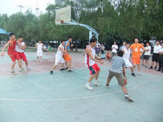 低碳环保实践团邀请祁南矿篮球队与中国矿大学生于14、15日晚在祁南矿小区广场上举行了两场篮球友谊赛。这次比赛进程紧张精彩,气氛热烈和谐。场上队员各个奋勇争先,场外拉拉队人人呐喊助威。本着“友谊第一,比赛第二”的原则,队员们在赛场上奋力拼搏,进攻、抢断、占位、防守……比赛最终以祁南矿篮球队两次险胜中国矿大篮球队的结局落下帷幕。通过两次比赛,不仅促进了双方之间的交流,增进了友谊,强健了体魄,更彰显了祁南矿安全监察处队伍、煤矿工人和矿大学子勇于战斗、敢于拼搏的精神。在广场另一边上,音乐或热烈或柔美地渲染着,一大群人热辣辣地跳得神采飞扬,跳操不仅容易坚持,减少居民户内开空调看电视时间,节电减排也很“低碳”。前后左右转一圈,抬手、抬脚、甩脚、扭腰、跳跃,各个动作跟着做一遍,就已经汗流浃背了。跳操不仅可以锻炼身体,放松精神,排毒养颜,还可以团结邻里、增强集体荣誉感。