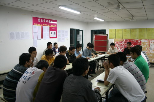 08、09各班级的学风建设,督促各班积极投入到四、六级及期末考试的备考中,特地召开此次会议。在各班班长、团支书及学习委员悉数到场后,会议正式开始。首先,由李晶同学向08级各班班委传达了李秀老师对08级学风建设的要求。要求中提出制定“1+1”的帮扶计划,提议各班建立互帮互助学习小组,吸收各班先进分子并根据侧重点落实到每个人,同时也指出了学习进步的相关考核标准和奖惩制度。随后,李晶同学针对09级的情况也提出了建立学习小组等建议,并再次强调08、09级各班召开有关班级学风建设的主题班会的要求,特别指出了班会保证实效的重要性。最后,伏旭同学对各班学风考风建设问题做出了进一步总结和探讨,希望各班能把学风建设落到实处。在大家对加强学风建设进行充分地探讨和交流后,本次会议圆满结束。