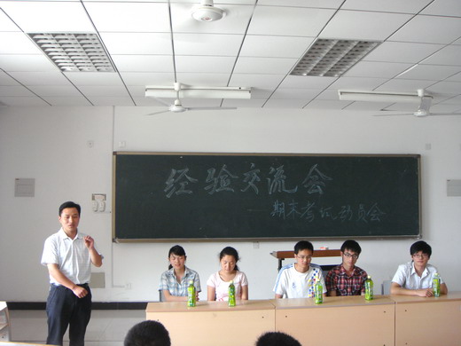 6月13日下午两点半,安全09-4班于教五C201举行了“经验交流会――期末考试动员会”。交流会由班主任唐俊老师主持,06级刘辉辉、韩文彬、张远娇、薛毅和季淮君五位同学作为嘉宾参加了此次经验交流会。