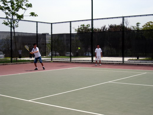 网球代表队虽然只有李永冲、秦小文、李茂林三位队员,但他们协力配合、积极调动比赛战略弥补了数量上的不足。网球比赛中休息时间短暂,但他们始终坚持、克服劳累,在网球场上挥洒汗水。