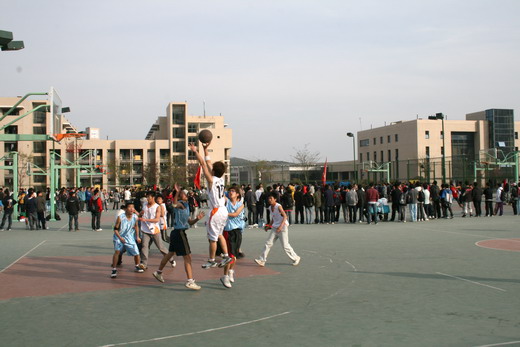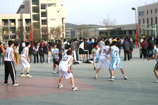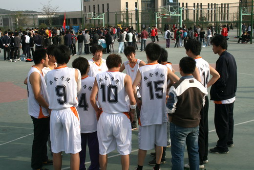 2010年大学生篮球联赛”4月7日在桃苑篮球场拉开了帷幕,安全男篮首战击败外文男篮。