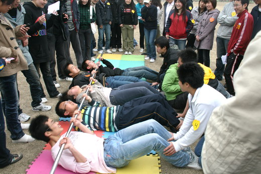 比赛由考验团队团结能力、知识水平以及智慧创新能力的三个环节组成。工作人员首先将同学们随机分成4个组,并留给大家5分钟进行交流。比赛首先进行第一环节,由两人三腿、集体仰卧起坐以及移板过河三个小项目组成。各小组集思广益,在最短的时间内完成任务的办法,扬长避短,出色的完成了第一环节的比赛。队员之间由陌生带来的隔阂感也逐渐消除,默契感也得到进一步的加强。在第二环节中大家在草地上按组别坐好,以个人为单位在15分钟内完成了一份趣味试卷。第三环节,需要各组男生到随机的宿舍借衣物一件并送到熨衣室,各组的女生在经过短暂的培训后开始比拼熨衣技术。建工义务熨衣队的同学担当评委,为各组女生的各方面表现打分,衣物熨完后由各组男生送回。比赛在持续了将近3个小时后顺利结束。