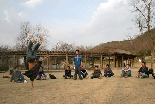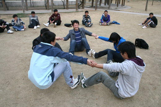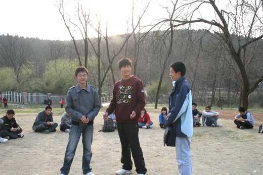 下山之后,在一片空地上,全班同学围成了一个圈,做起了游戏。先是“齐心协‘立’”,同学们手拉手、脚对脚坐在地上,几人齐心协力站起来,这个游戏让大家知道只有齐心协力才能成功。接着大家围在一起开始了“五毛一块”的游戏,提升了大家的默契程度。班中同学还精心准备了小品、空翻等节目,迎来大家阵阵欢笑和掌声。