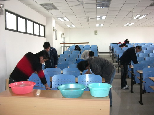 青年志愿者协会依照安排来到了分配的教室――教1A201、202、203,在院青协代表尹丽娜的带领下,清洗工作顺利展开,每个同学们都认真清洗有污迹的桌椅。虽然清洗过程有些辛苦,但看到清洗后干净后的桌椅同学们感到非常欣慰。在同学们的积极合作下,清洗工作很快就完成了。